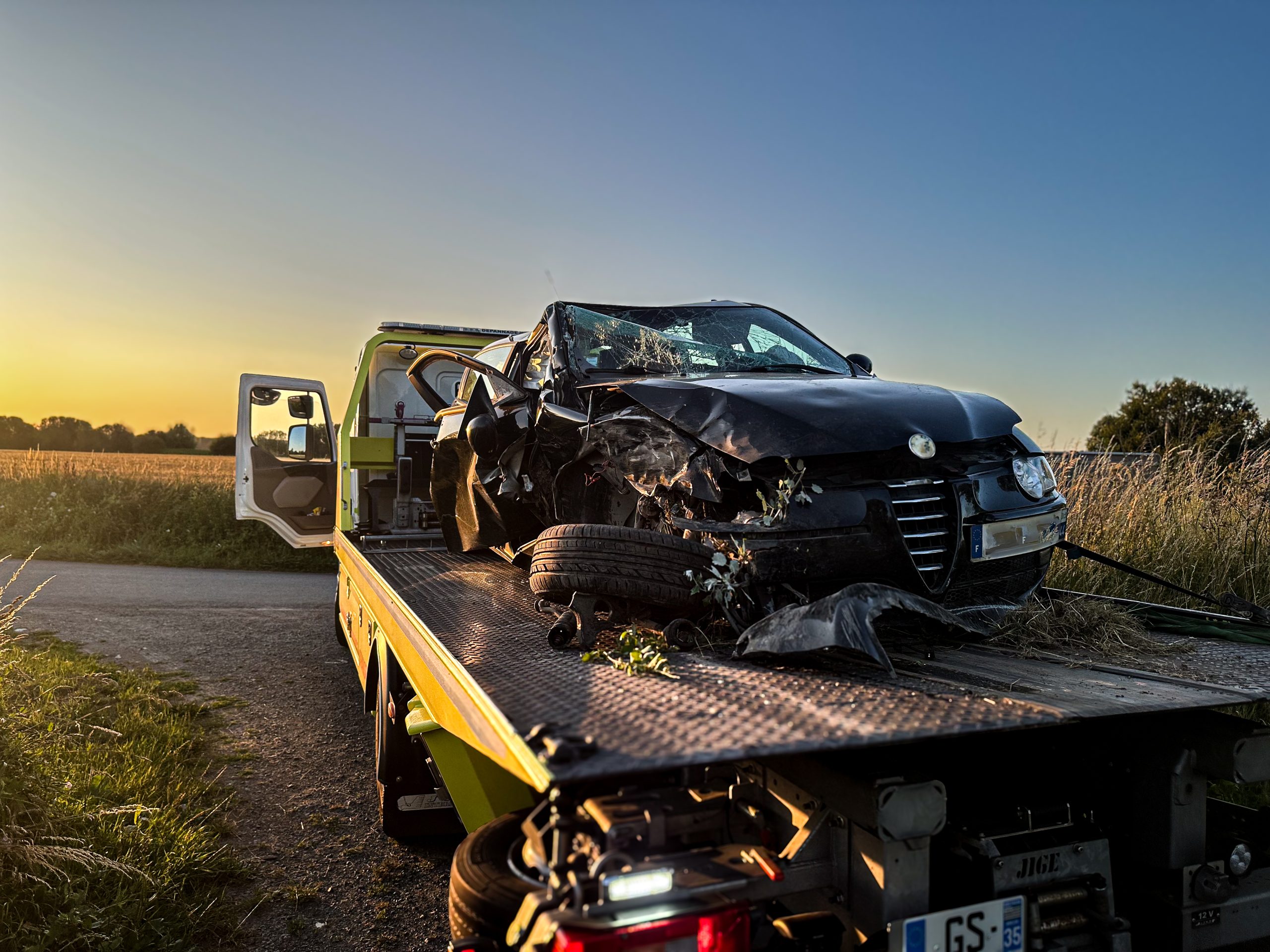voiture accidentée sur une dépanneuse.