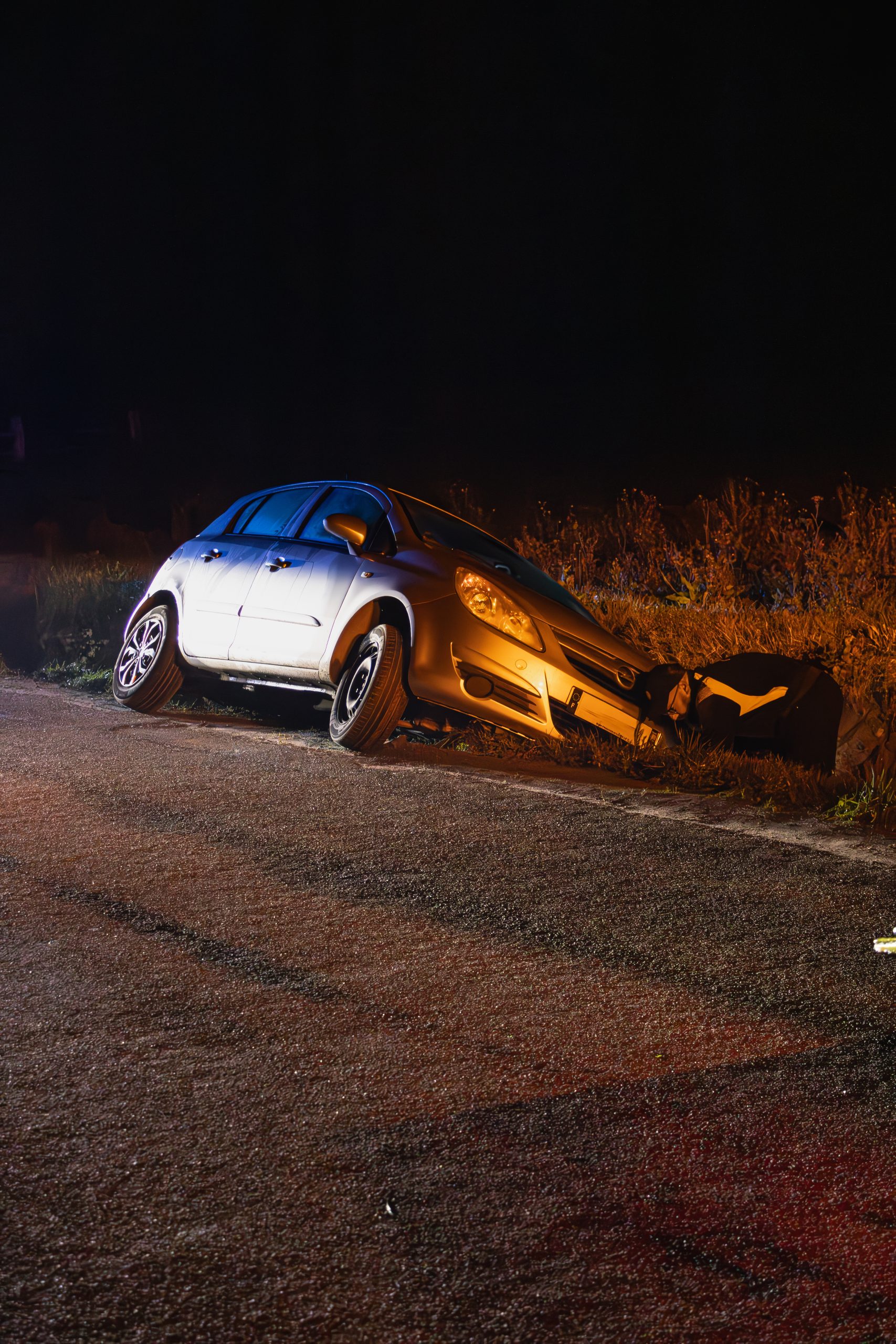 voiture poser dans un fossé avec un technicien.