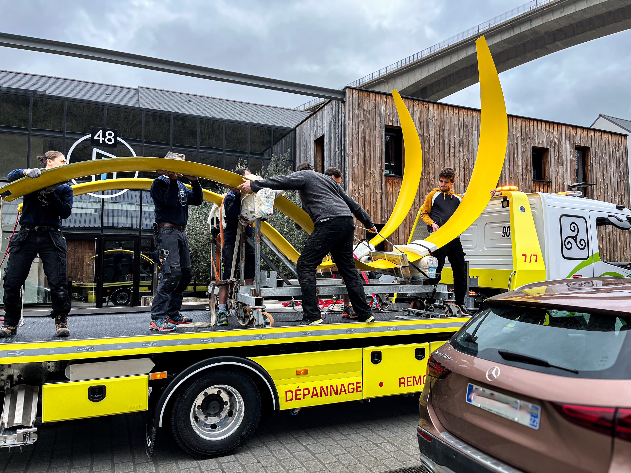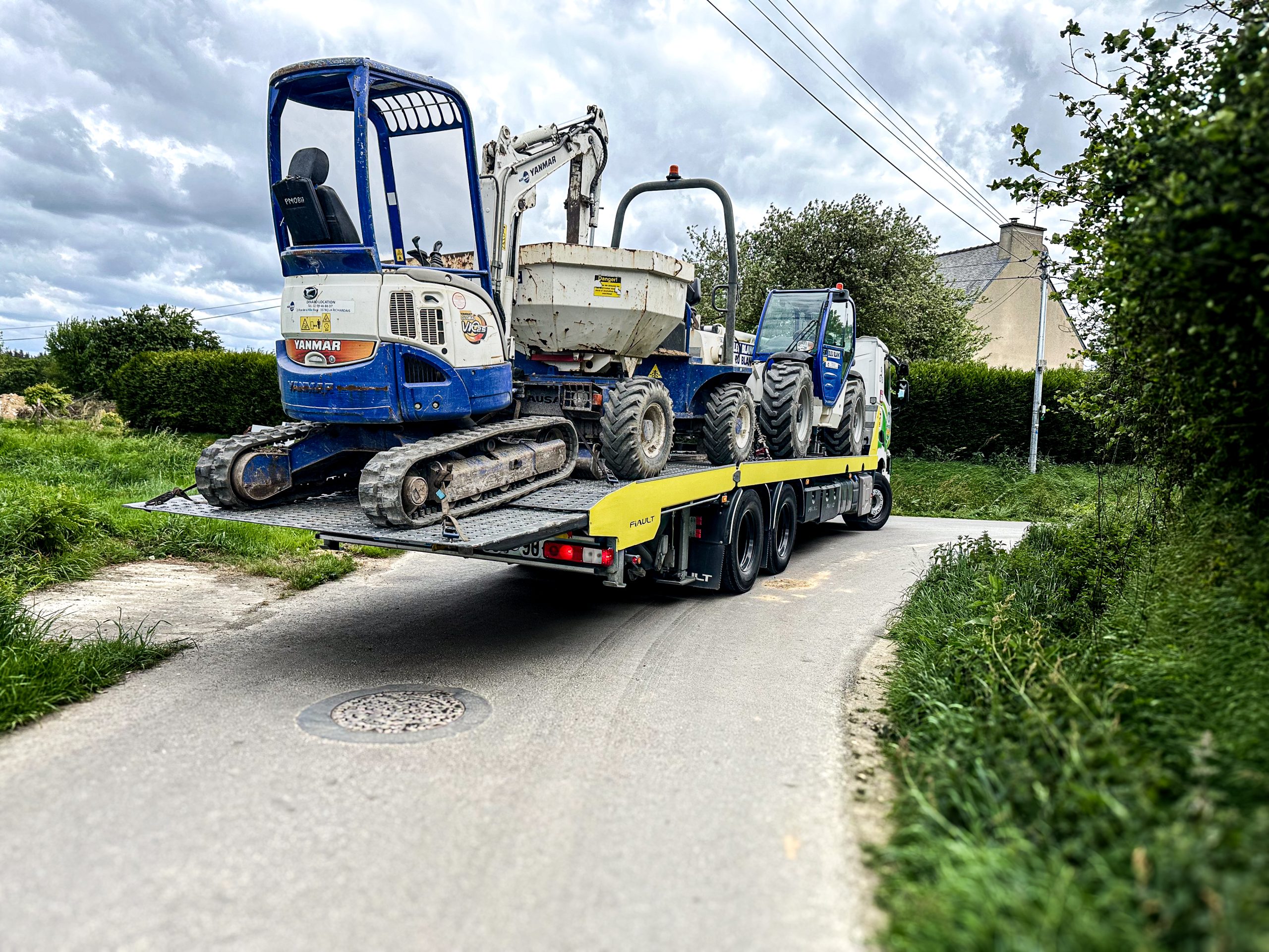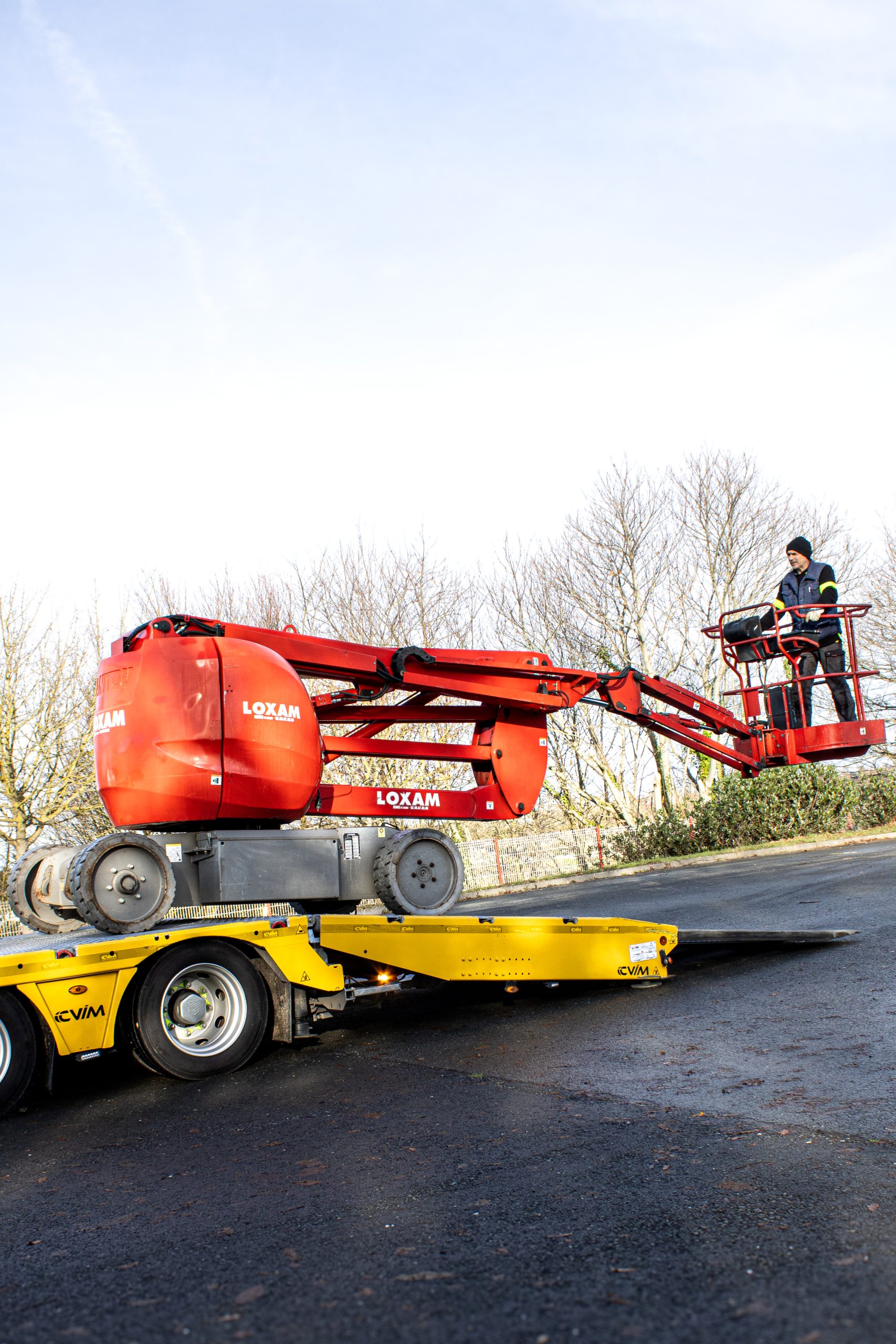 Technicien entrain d'effectuer le chargement d'un véhicule de chantier.